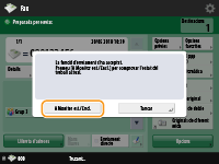 Si <Mostrar avís en acceptar el treball> està establert en <On>, la pantalla <Monitor estat/Cancel·lar> pot aparèixer a partir de la pantalla següent mostrada després de rebre un treball d'enviament. <Mostrar avís en acceptar el treball>
