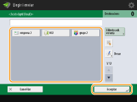 , es mostren les destinacions de correu electrònic, servidor de fitxers i destinacions de grup, respectivament.