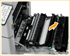 Si hi ha paper encallat a la zona superior de la unitat dúplex, traieu-lo amb compte en la direcció de la fletxa.