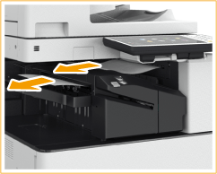 Pokud se papír zachytil, opatrně jej vytáhněte ve směru šipky.