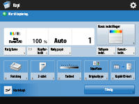 , der vises på Hovedmenu og skærmbilledet Grundlæggende funktioner, for at tilpasse skærmbilledet, som f.eks. omarrangement af knapper eller oprettelse af en genvejsknap. Det er kun en administrator, der kan tilpasse hovedmenuskærmen. Tilpasning af touchpanelet