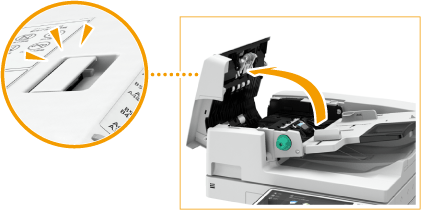 Hvis en original sidder fastklemt, skal du trække forsigtigt i den i pilens retning.