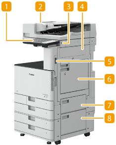 Syöttää alkuperäiset asiakirjat automaattisesti laitteeseen skannausta varten. Kun syöttölaitteeseen asetetaan kaksi tai useampia arkkeja, alkuperäiset asiakirjat voidaan skannata peräkkäin.