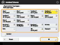 Valitse paperikasetti, johon paperia on lisätty, ja valitse <Muokattu koko>.