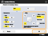Määritä tulostuspaikka ja alkuperäisen suunta ja valitse <OK>.