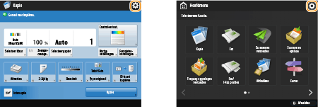 op het Hoofdmenu en het scherm met basisfuncties om het scherm aan te passen, zoals het herschikken van knoppen of maken van sneltoetsen. Alleen een beheerder kan het hoofdmenuscherm aanpassen. Het aanraakscherm aanpassen