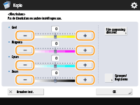 Druk op <-> of <+> voor elke kleur om de kleurbalans aan te passen.