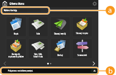 Naciśnij na przyciski funkcji na ekranie <Główne Menu>, aby wyświetlić ekran Podstawowych funkcji z poziomu którego można uzyskać dostęp do kopiowania, faksowania i skanowania. Pomimo że wyświetlane elementy i ustawienia ekranu Podstawowych funkcji różnią się, w zależności od dostępnych funkcji, można zmienić te ustawienia zgodnie z własnymi potrzebami. Dostosowywanie ekranu Podstawowe funkcje do własnych potrzeb