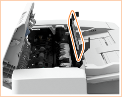 Jeżeli po przeprowadzeniu czyszczenia podajnika na oryginałach lub papierze w dalszym ciągu pojawiają się smugiZaładuj około 10 arkuszy papieru formatu A4 do podajnika, a następnie wykonaj podane czynności, aby przeprowadzić operację <Czyszczenie podajnika>. Po wyświetleniu komunikatu informującego, że czyszczenie jest zakończone należy spróbować użyć podajnika do skopiowania oryginału, aby sprawdzić, czy problem został rozwiązany.