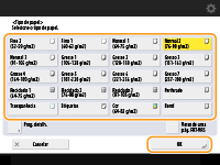 o botão ao qual o tipo de papel envelope foi registado <OK>. Gravar o formato e o tipo de papel utilizado frequentemente para o tabuleiro multifunções |