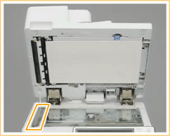 Puxe a alavanca superior para abrir a tampa da área de leitura de alimentação de documentos.