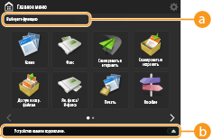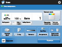 Нажмите любую кнопку функции на экране <Главное меню>, чтобы отобразить экран основных функций, на котором можно выбрать такие основные функции аппарата, как копирование, сканирование, а также отправка и получение факсов. Несмотря на то что внешний вид экрана основных функций и пункты настройки на нем различаются для каждой функции, эти параметры можно изменять в соответствии с потребностями. Настройка экрана основных функций