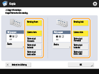 För att lägga till ett bakre omslag, tryck på <Omslag bak>. Vid kopiering till baksidan kan du ange var du vill kopiera: framsidan, baksidan eller båda sidorna.