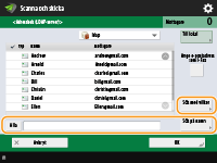 Om du vill kontrollera det totala antalet angivna mottagareAntalet angivna mottagare visas längst upp till höger på skärmen. Därmed kan du bekräfta att antalet mottagare stämmer innan du skickar utskriften.