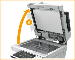 När du stänger dokumentmataren måste du se till att ögonen inte exponeras för ljuset från originalglaset.