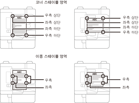 스테이플 모드는 다음 용지 크기에서 사용가능합니다. A4, A4R, A3, B4 및 B5
