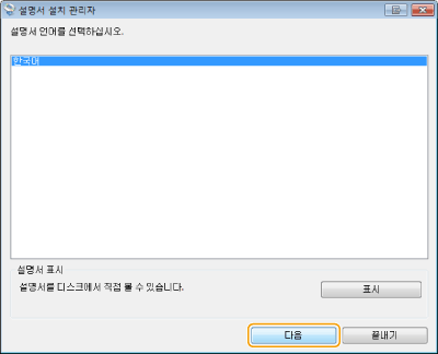 화면 안내에 따라 설명서를 설치합니다.