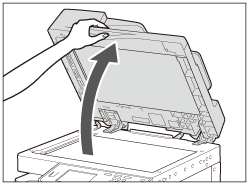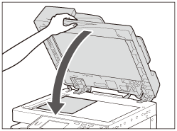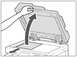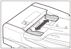 imageRUNNER2530Ki/2530KP/2525Ki/2525KP/2520Ki/2520KP의 피더를 사용하여 매우 얇은 원고(37 ~ 52 g/m2) 또는 매우 두꺼운 원고(105 ~ 128g/m2)를 스캔하는 경우에는 원고를 한 장씩 세트합니다.
