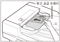손가락이 낄 수 있으므로 원고 공급 트레이 주위 틈새로 손가락을 집어넣지 마십시오.