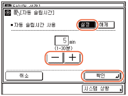 기본 설정은 '설정' 및 '2분'입니다.