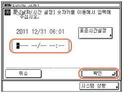 - (숫자 키)를 사용하여 현재 날짜 및 시간을 입력합니다.![]() 일, 월 및 년도 그리고 시간을 24시 표기 방식으로 입력합니다.