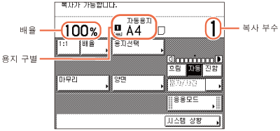→ 용지 크기 선택용지 크기/종류 및 급지 위치를 선택할 때 누릅니다.