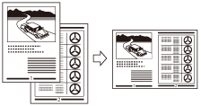 2매, 4매의 원고를 단면 또는 양면 복사 용지에 맞추어 자동으로 축소할 때 누릅니다