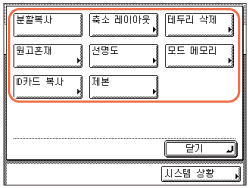![]() 응용 모드 화면의 기능에 대한 자세한 내용은 고급 복사 기능을 참고하십시오.