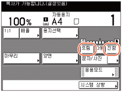 OHP 필름에서는 자동 복사 농도 조정이 작동하지 않을 수도 있습니다. 이 경우 [흐림] 또는 [진함]를 눌러 농도를 수동으로 조정합니다.