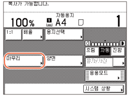 회전 모드에 사용할 용지 카세트 또는 수동 급지대는 [카세트 자동선택의 설정/해제] 모드에서 복사에 대해 '설정'으로 지정되어 있습니다. (기기 구성 기본 설정)