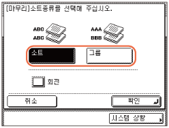 [소트], [그룹] 또는 [스테이플]을 누릅니다.