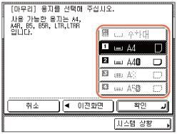 A4 및 A4R 모두 또는 B5 및 B5R 용지 모두가 용지 카세트에 설정되었거나 수동급지대에 적재되었습니다.