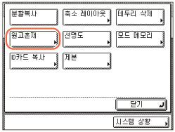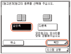 원고 혼재 모드는 분할 복사 양면, 분할 복사, 축소 레이아웃, ID 카드 복사, 테두리 삭제 또는 제본 모드와 함께 사용할 수 없습니다.