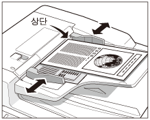 슬라이드 가이드를 조절하여 피더의 가장자리와 원고의 상단 및 하단의 가장자리를 정렬합니다.