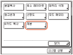 제본 모드는 자동 용지 선택, 양면 복사, 마무리, 분할 복사, 테두리 삭제, 원고 혼재 또는 ID 카드 복사 모드와 함께 사용할 수 없습니다.