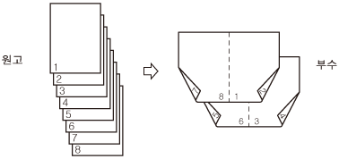 항상 세로(수직) 방향으로 된 원고를 세로로 세트해야 합니다. 이들 원고를 가로로 세트하면 짝수 페이지의 위아래가 바뀌어 인쇄됩니다.