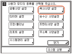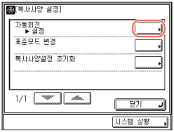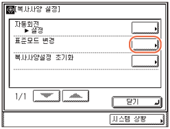 (사용자 모드) → [복사사양 설정]을 누릅니다.