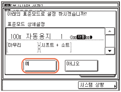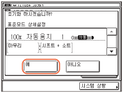 표준 설정도 초기화됩니다. (현재 표준 설정 변경)