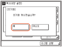 복사 설정에서 변경된 모드를 출고 기본 설정으로 복원할 수 있습니다. (복사 설정표)