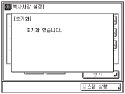<초기화>라는 메시지가 터치 패널 화면에 약 2초 동안 표시됩니다.