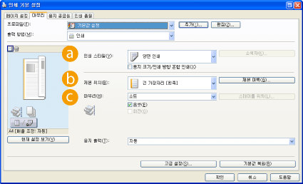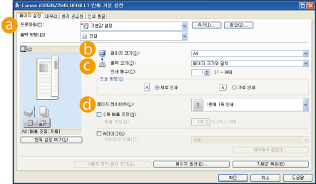 † 스크린 샷과 설명은 Windows 프린터 드라이버를 기준으로 합니다. Macintosh 프린터 드라이버에서 설정을 구성하는 방법에 대해서는 프린터 드라이버의 도움말을 참고하십시오.