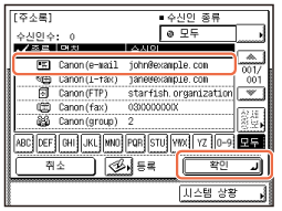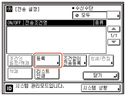 터치 패널 화면에서 [등록]을 누르고 → 전송 조건과 전송처를 등록합니다.
