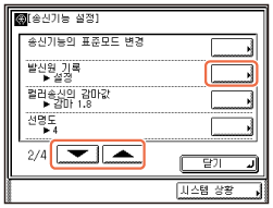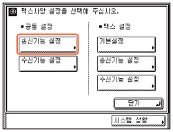 원하는 전송 설정을 선택하고 → [조건의 설정/해제]를 누른 후 → [닫기]를 누릅니다. 시작 화면으로 돌아가려면