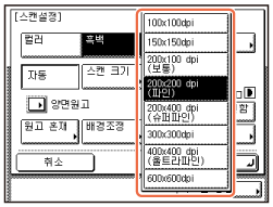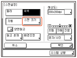 [스캔 크기]를 누릅니다.