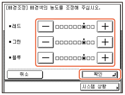 [-] 또는 [+]를 눌러 각 색상의 양을 조정하고 → [확인] → [확인]을 누릅니다.
