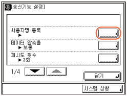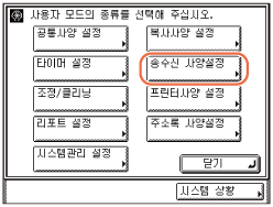 (사용자 모드) → [송수신 사양설정]을 누릅니다.