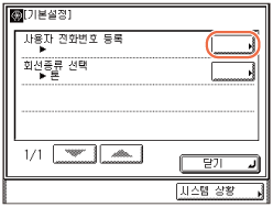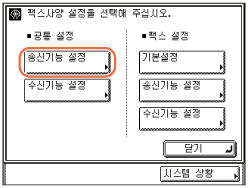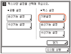 (사용자 모드) → [송수신 사양설정] → [기본설정](<팩스 설정> 아래)을 누릅니다.