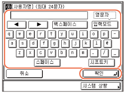 화면 표시 키보드를 사용하여 사용자명 (최대 24자)을 입력하고 → [확인]을 누릅니다.