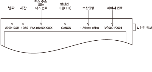수신인에게 보낸 모든 문서의 맨 위에 송신 기록이 인쇄됩니다.