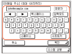 화면 표시 키보드를 사용하여 이메일 주소(최대 120자)를 입력합니다.